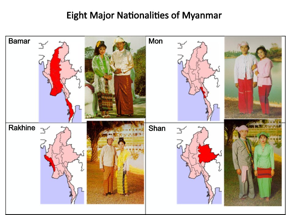 It is reflected in everything they do: Myanmar (also known as burma) is an extremely ethnically diverse nation with 135 distinct ethnic groups officially recognised by the burmese government. Myanmar has about 5 million expatriates live and it is mainly chinese. Ethnic groups of myanmar (i.imgur.com). Burman 68%, shan 9%, karen 7%, rakhine 4%, chinese 3%, indian 2%, mon 2%, other 5%.